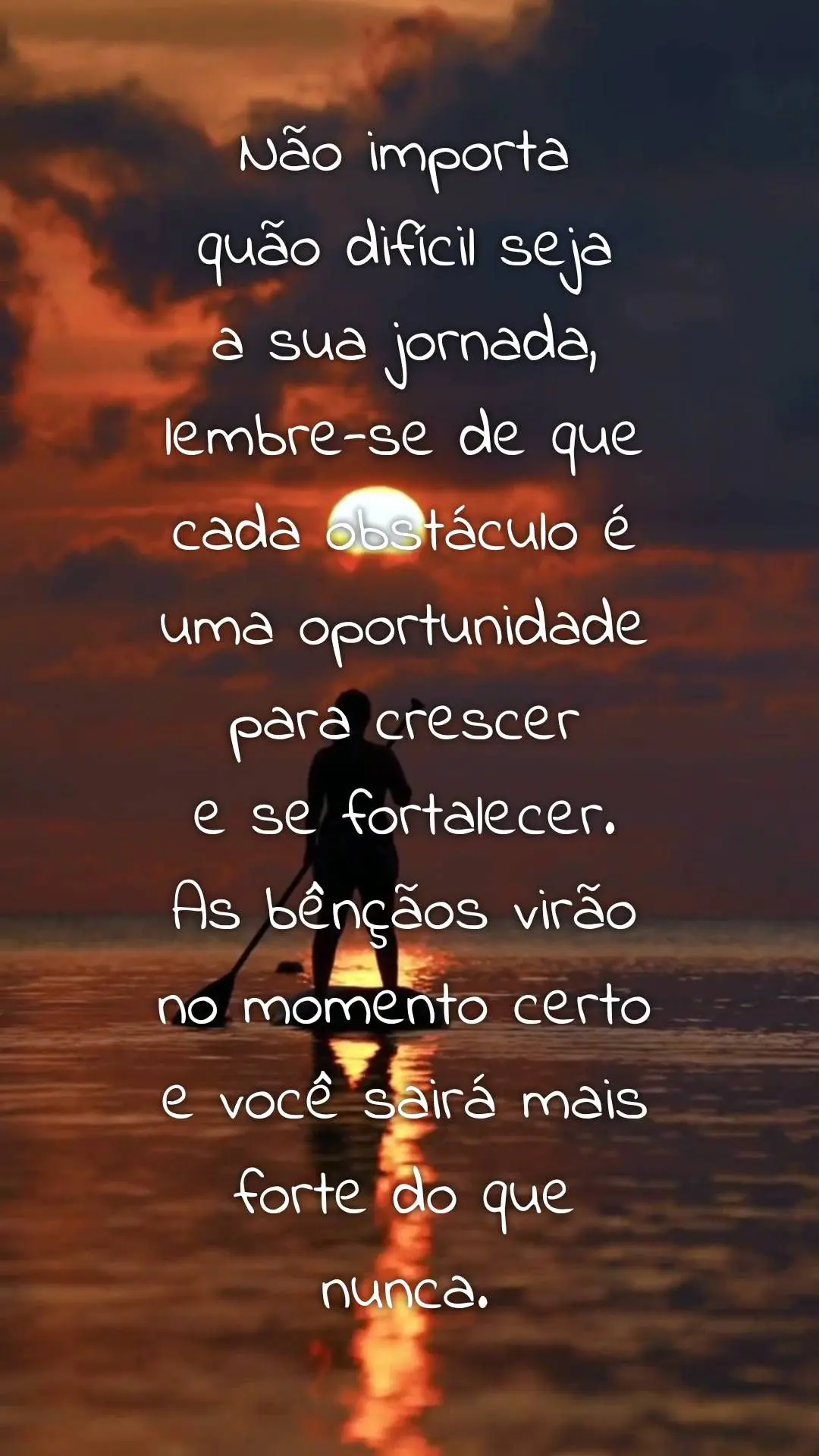 Não importa quão difícil seja a sua jornada, lembre-se de que cada obstáculo é uma oportunidade para crescer e se fortalecer. As bênçãos virão no momento certo e você sairá mais forte do que nunca. #motivação #reflexão #benção